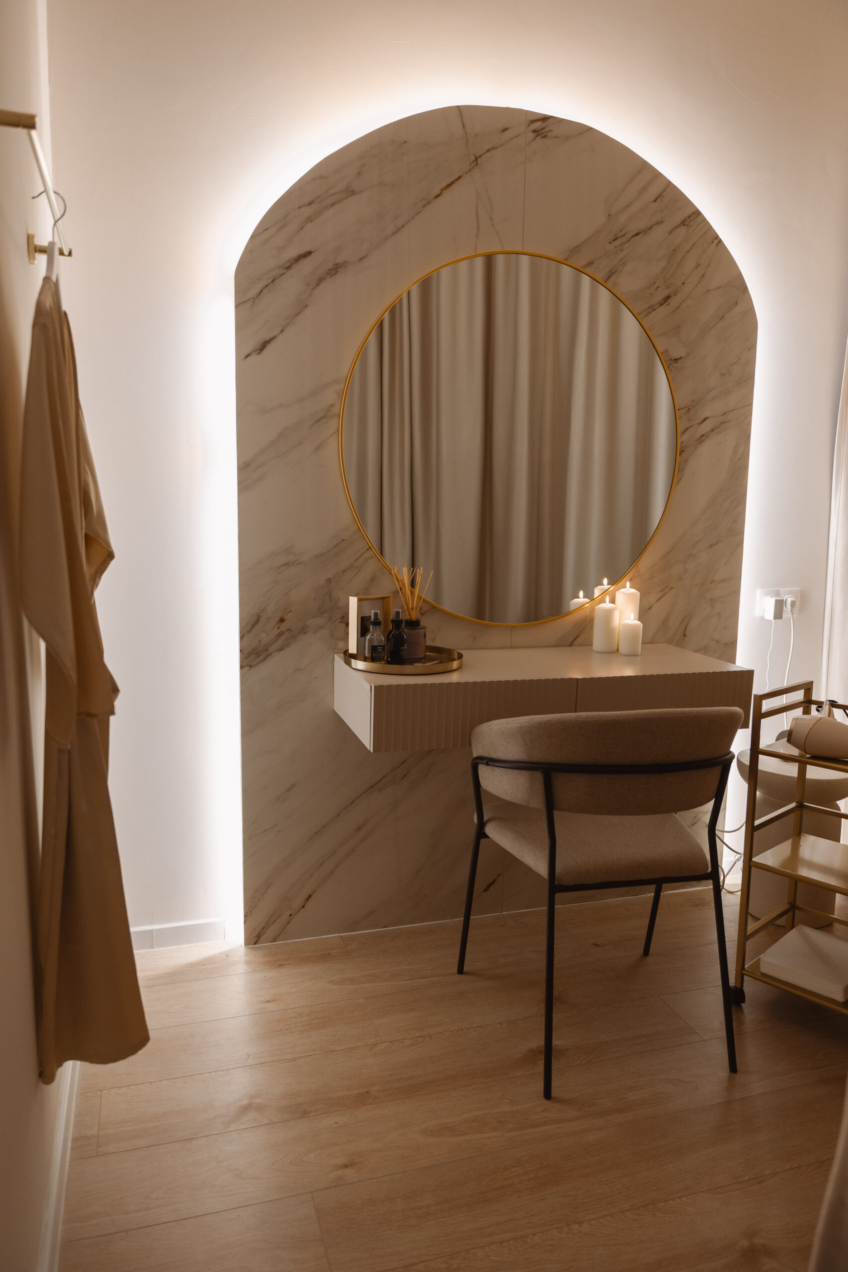 Egy új üzlet indításakor a legnehezebb feladat megtalálni azt a pontot, ahol a márka és a tulajdonos személyisége találkozik. Azt az összhangot, ami nemcsak a piacnak szól, de amiben az ember is otthon érzi magát. Ennél a kivitelezésünknél különösen nagy figyelmet fordítottunk arra, hogy a Head spa megálmodója minden részletben magára ismerjen. Aki ide belép, nyugalmat és kényeztetést keres – mi pedig ezt a békességet öntöttük formába.